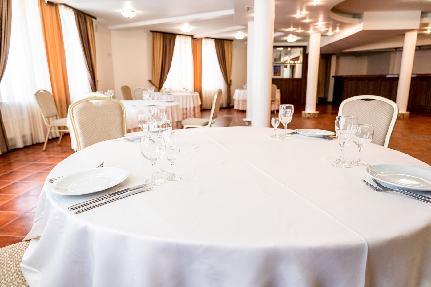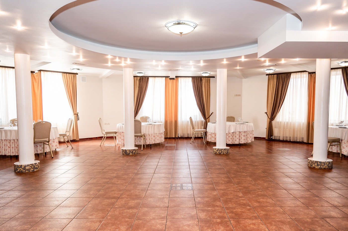 Зал має прямий вихід до кухні ресторану, що дозволяє оперативно та ефективно обслуговувати захід.